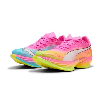 A seismic shift in the world of road racing, the Fast-R NITRO™ Elite 3 will have you smashing your personal bests from the 5k to the Marathon. With an upgraded NITROFOAM™ Elite outsole, experience maximal energy return, while a precisely engineered carbon-fiber PWRPLATE gives you a propulsive ride from start line to the finish. No racing shoe is complete without PUMAGRIP rubber, an outsole that will allow you to perform your best in any raceday conditions. Unlock your new personal best in Fast-R NITRO™ Elite 3. Features- NITROFOAM™ Elite: Premium performance foam technology that provides pinnacle responsiveness in an extremely lightweight package- PWRPLATE: Carbon fibre plate engineered to stabilise the midsole while maximising energy transfer- ULTRAWEAVE: Ultra-light, engineered fabric with a structured, 4-way stretch that reduces weight and friction. Built for athletes looking to increase speed and strength- PUMAGRIP: Durable performance rubber compound designed for all-surface tractionDetails- Regular fit- Stack height: 40mm/32mm- Heel-to-toe drop: 8mm- Cushioning: max- Recommended for: neutral pronators- Lifespan: 300kmULTRAWEAVEPremium lightweight material engineered for breathabilityNITROFOAM™ ELITEInnovative nitrogen-infused foam technology that offers exceptional energy return, unbeatable speed, and greater long-distance comfort for race-dayPWRPLATEExtended carbon fiber plate for powerful propulsion and elite efficiencyFast-R3 is the fastest running shoe we‘ve ever made – data-back, lab-tested, and built for breakthroughs. After testing it on elite runners and real athletes, we digitally engineered and optimized the product fully based on data. Fast-R3 is designed to shave minutes off your race time.With its 3.15% improved running economy*, this translates to an unprecedented potential marathon time saving of more than 4 minutes and 30 seconds, for a 3 hour marathon runner. We cut 95g from its predecessor, stacked it higher with new and improved NITROFOAM™ ELITE, and extended the carbon PWRPLATE for maximum propulsion.*Compared to the PUMA Fast-R NITRO™ Elite 2 ART.NR. 31361601